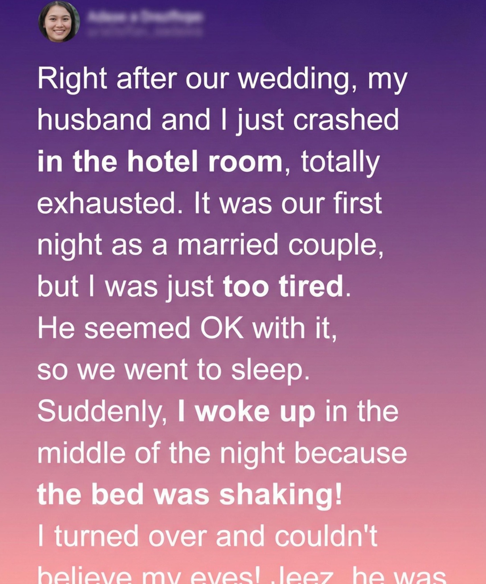 We barely made it to the bed before collapsing, still half-dressed, shoes kicked somewhere near the door, the soft overhead lights still glowing. It was supposed to be our grand, romantic first night as husband and wife.